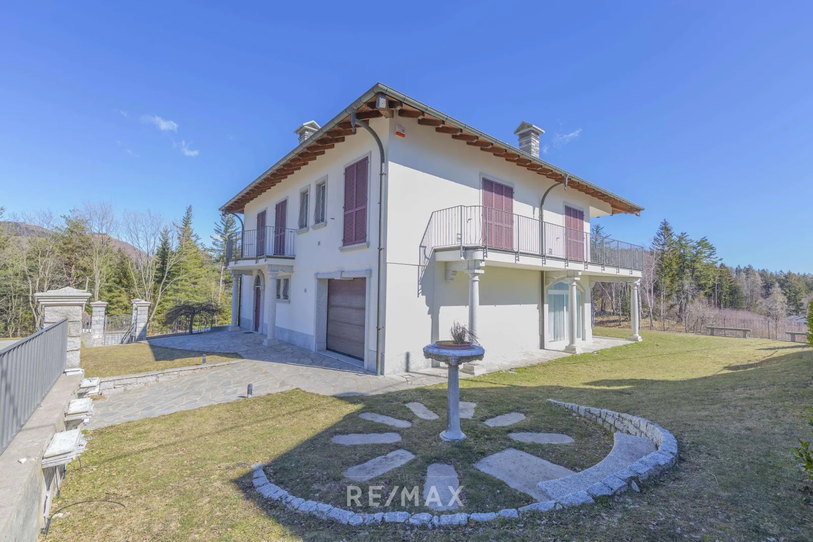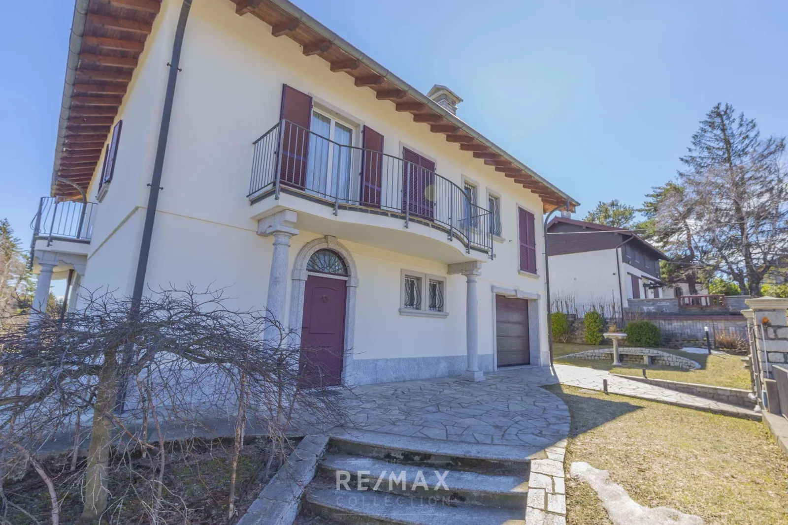Villa del Sole si trova in posizione soleggiata e dominante, sulle colline di Verbania, con una magnifica vista sul Lago Maggiore. E’ immersa nella quiete di un paesaggio di montagna, a pochi passi dal Golf Club di Pian di Sole. L’immobile, disposto su tre livelli, si sviluppa su una superficie di 300mq circa, circondati da un ampio giardino perfettamente piantumato ed offre la possibilità di ospitare una piscina. Al piano terra troviamo un ampio ingresso, un luminoso open space con camino e vista lago, completamente circondati da un porticato che gira tutt’intorno alla villa. Sempre al piano terra troviamo un ulteriore locale con camino e forno in pietra, un bagno, il box auto collegato direttamente alla villa, un locale lavanderia ed un locale tecnico. Al piano superiore si accede tramite una scala in beola bianca, dove troviamo un ulteriore ampio salone e sala da pranzo con camino, la cucina, un ripostiglio, una cabina armadio e tre camere da letto, tutte dotate di bagno privato e terrazzo. La grande mansarda open space potrebbe essere trasformata in ulteriori camere da letto/studio/palestra. La proprietà comprende inoltre posti auto interni ed una cisterna per la raccolta dell’acqua utilizzata per l’irrigazione del giardino. L’intera proprietà, ristrutturata recentemente, si presenta in ottimo stato di manutenzione ed è rifinita con materiali caratteristici del posto. La Villa dista 15 minuti dal centro di Verbania, 25 km dal confine Svizzero e solo un’ora dall’aeroporto internazionale di Milano Malpensa.