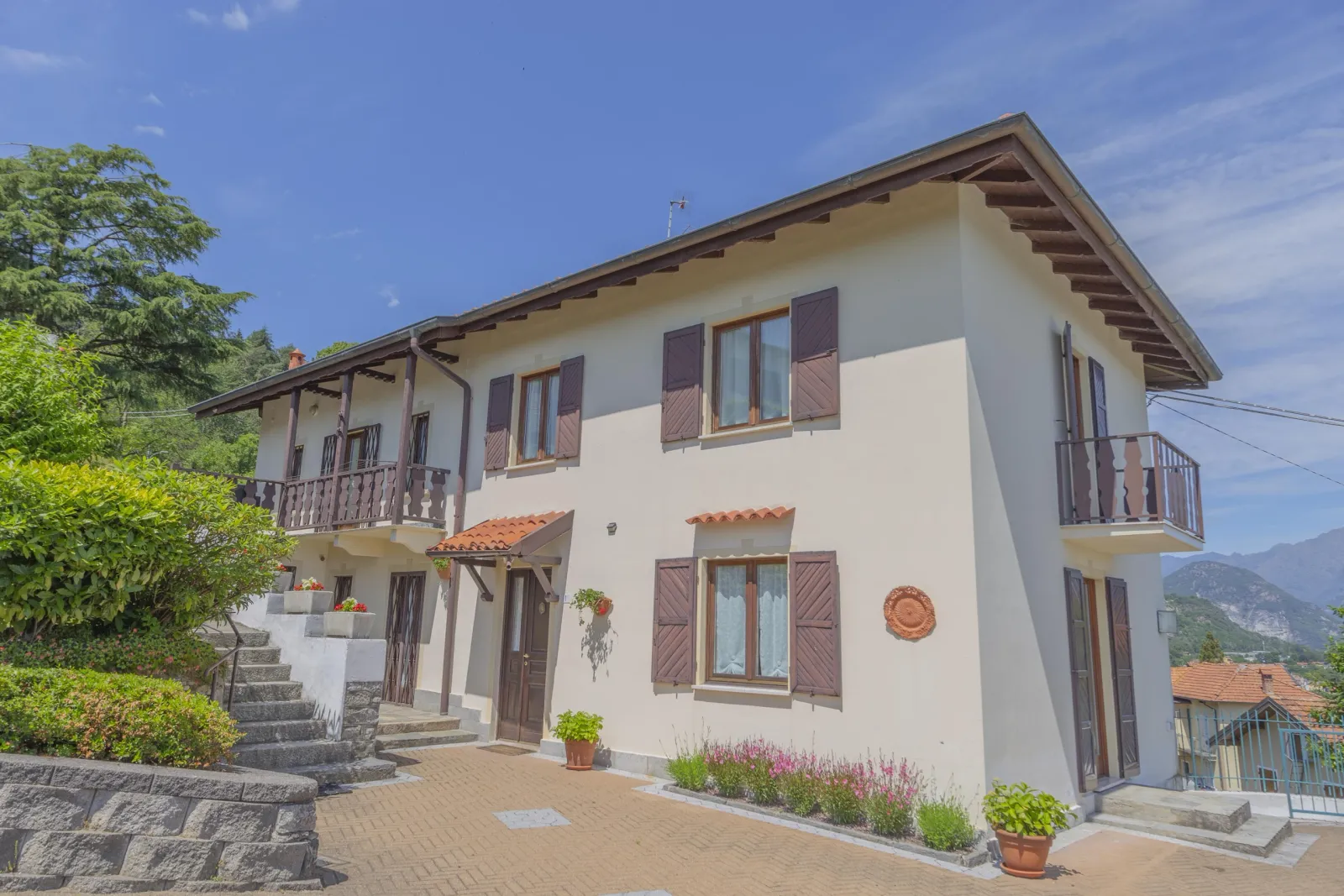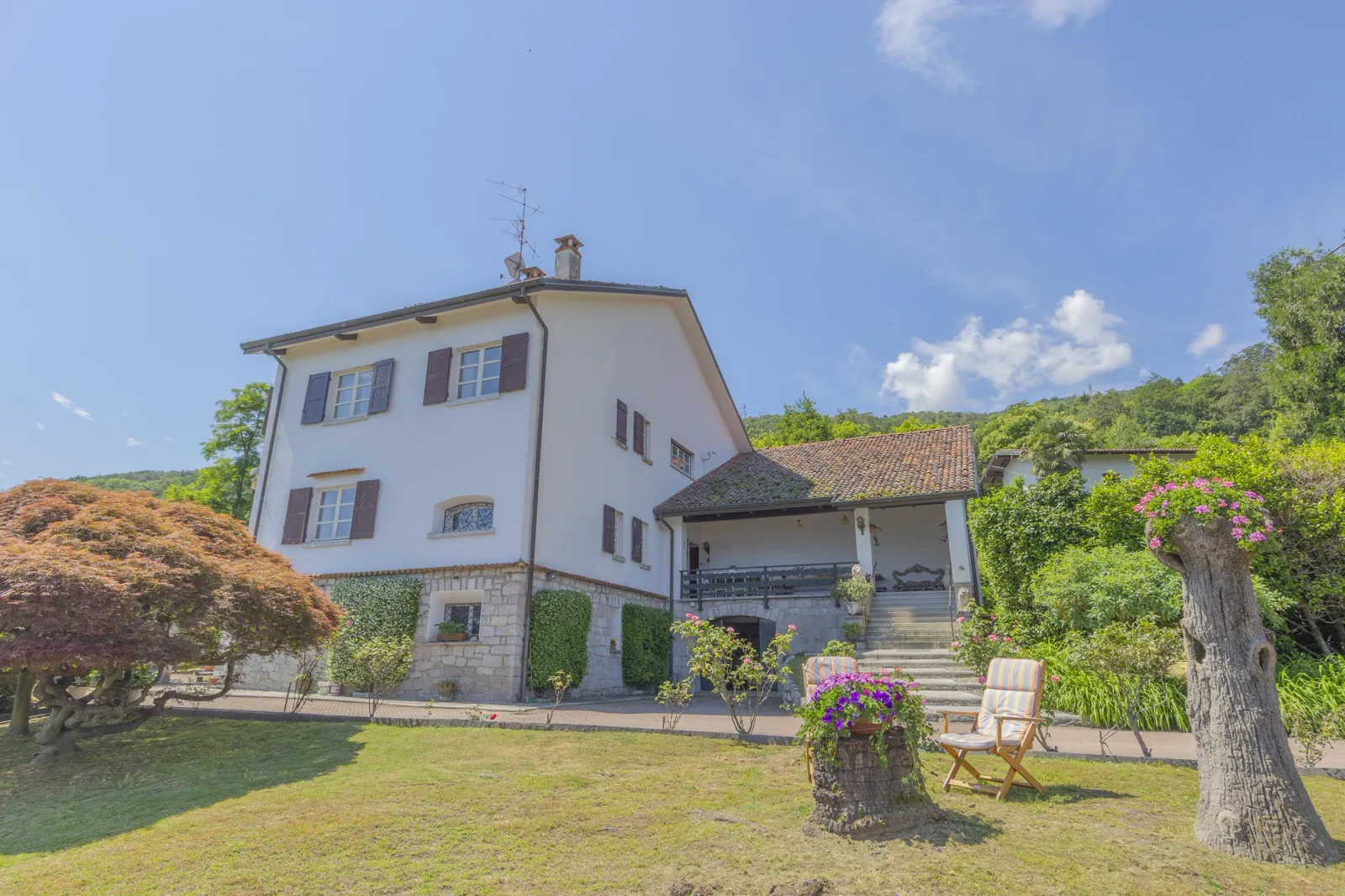 Questa caratteristica villa con dependance offre una vista mozzafiato sul Lago Maggiore e sulle montagne circostanti. Entrando nella villa principale veniamo accolti da un ampio ingresso che conduce al soggiorno, alla sala da pranzo, ad un’ampia cucina, al bagno per gli ospiti e ai locali di servizio. Le zone “living” si aprono su una bella terrazza che si affaccia sul giardino offrendo una vista stupenda. Il piano superiore ospita un ampio “open space”, cinque camere da letto di buone dimensioni e tre bagni. Al piano seminterrato troviamo un ampio garage doppio, la cantina e diversi locali adibiti a ripostiglio. L’affascinante guest house è il vero fiore all’occhiello di questa meravigliosa proposta e offre viste mozzafiato da ogni angolazione, due ampie camere da letto, un bagno, una spaziosa cucina ed un soggiorno. L’intera proprietà è circondata da un giardino ben curato, ricco di luoghi in cui rilassarsi e godere di tranquillità e del panorama. Il giardino ospita comodamente sia la villa principale che la guest house indipendente. Un ampio vialetto lastricato permette un facile accesso sia alla villa principale che alla dependance.