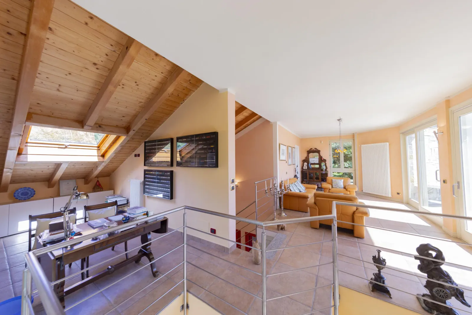 Questa splendida villa indipendente di lusso si trova sulle colline panoramiche sopra Oggebbio, in una posizione che garantisce assoluta privacy e una vista mozzafiato sul Lago Maggiore. Con il suo design architettonico unico — audace e armonioso allo stesso tempo — questa proprietà si distingue come un vero capolavoro. All’ingresso della villa, si viene accolti da un ampio ingresso luminoso, da cui si gode subito di una spettacolare vista sul lago. Da qui si accede alla spaziosa zona living open space, caratterizzata da un accogliente camino e da due grandi porte-finestre che si aprono su una magnifica terrazza in pietra — il luogo ideale per pranzi all’aperto, momenti di relax o cene con vista lago e montagna. Adiacente al soggiorno si trova una cucina moderna completamente attrezzata, perfetta per gli amanti della cucina e per ricevere ospiti. Sul medesimo piano, tornando verso l’ingresso, si accede alla zona notte, composta da una camera matrimoniale e da un bagno di lusso dotato di vasca idromassaggio. Accanto all’ingresso principale, una scala conduce al piano superiore, dove si trova una seconda, ampia zona living, perfetta come studio, angolo lettura o area relax. Questo piano offre anche una stanza per gli ospiti e un ulteriore bagno, ed è interamente circondato da una grande terrazza in pietra con vista lago senza ostacoli. Scendendo al livello inferiore, si accede all’esclusiva area wellness e spa privata della villa, completa di sauna, bagno turco e una grande ed elegante piscina coperta, riscaldata tramite pannelli solari. Questo piano include anche una camera per gli ospiti e un bagno completamente attrezzato, offrendo il massimo comfort e privacy. Caratteristiche Principali: Vista panoramica sul Lago Maggiore Design architettonico distintivo e armonioso Ampie terrazze in pietra con vista mozzafiato Piscina coperta riscaldata con pannelli solari Spa privata con sauna e bagno turco Seconda zona living versatile (ideale come studio o area relax) Jacuzzi nel bagno principale Cucina moderna completamente attrezzata Suite per ospiti con bagno privato Eccellente privacy in una posizione collinare prestigiosa Questa villa rappresenta la perfetta combinazione tra lusso moderno e bellezza naturale, ideale come residenza principale, casa vacanze o investimento immobiliare di prestigio sul Lago Maggiore. Vivi la tranquillità, il comfort e l’esclusività di questo straordinario rifugio sul lago.
